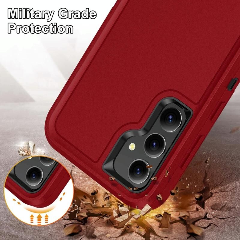 Θήκη τηλεφώνου για Samsung Galaxy S23 FE 5G, υβριδική από PC και σιλικόνη, ανθεκτική με βάση στήριξης (Κόκκινο Ρόδι + Ανοιχτό Πράσινο)