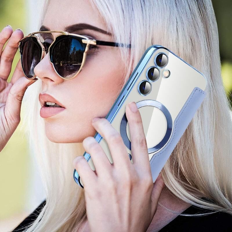 Θήκη τηλεφώνου δερμάτινη με μαγνητική υποστήριξη MagSafe, προστασία RFID και αντι-κλοπής για Samsung Galaxy S23 FE 5G (Σκούρο Μπλε)