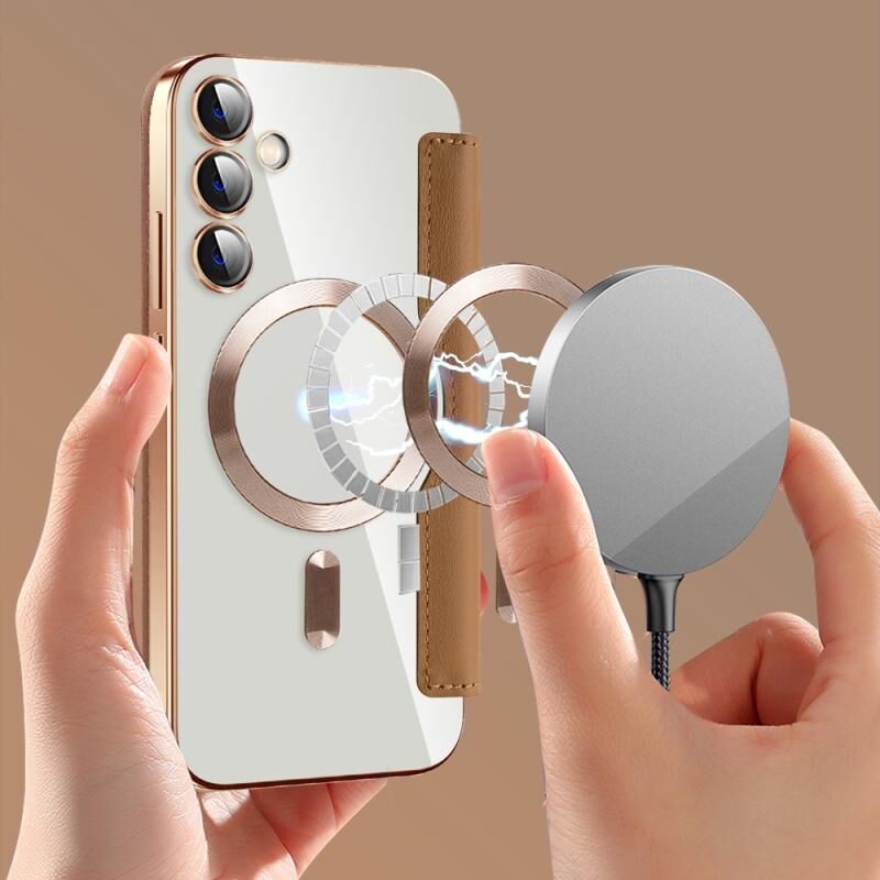 Θήκη τηλεφώνου Samsung Galaxy S23 FE 5G Shield MagSafe RFID Anti-theft από δέρμα με ρόμβους (Καφέ)