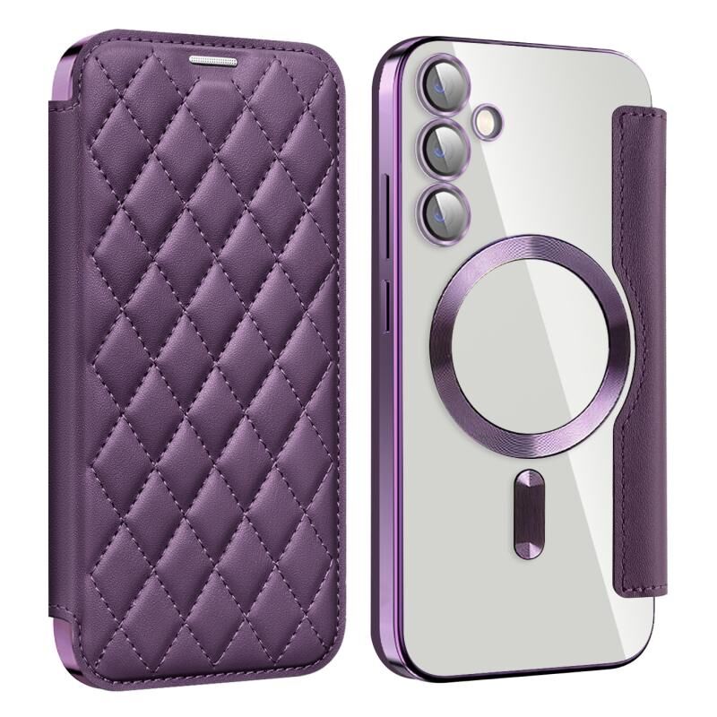 Θήκη τηλεφώνου Samsung Galaxy S23 FE 5G Shield MagSafe RFID Anti-theft από δέρμα με ρόμβους (Μωβ)