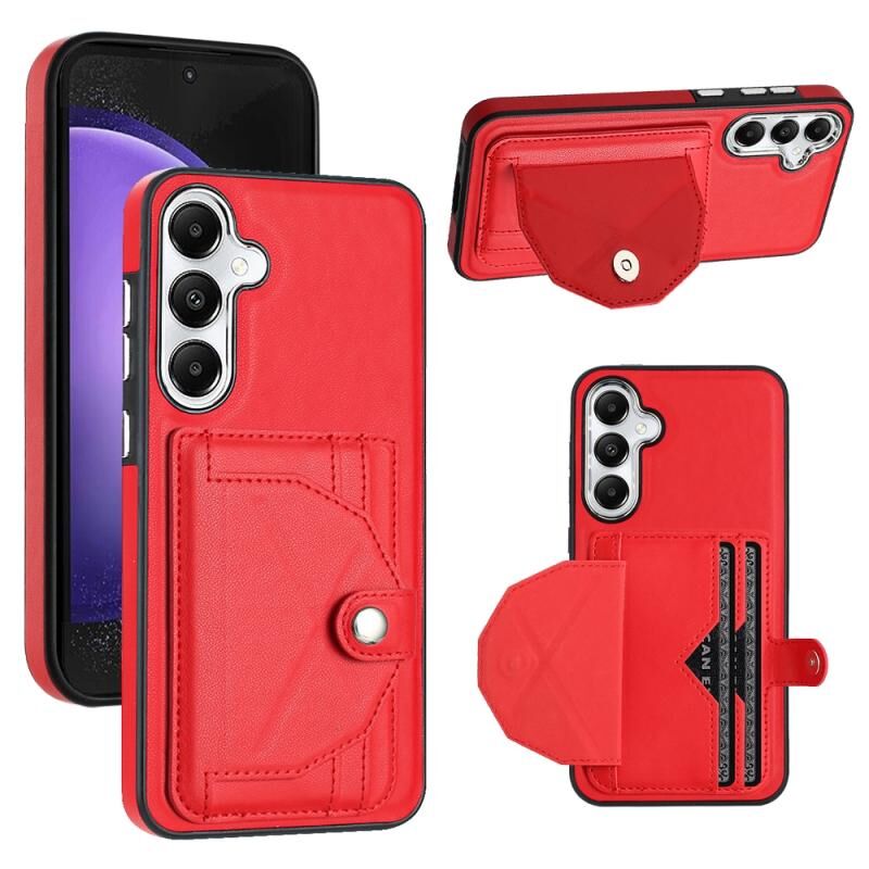 Για Samsung Galaxy S23 FE 5G Ανθεκτική δερμάτινη θήκη τηλεφώνου με θήκη κάρτας (κόκκινο)
