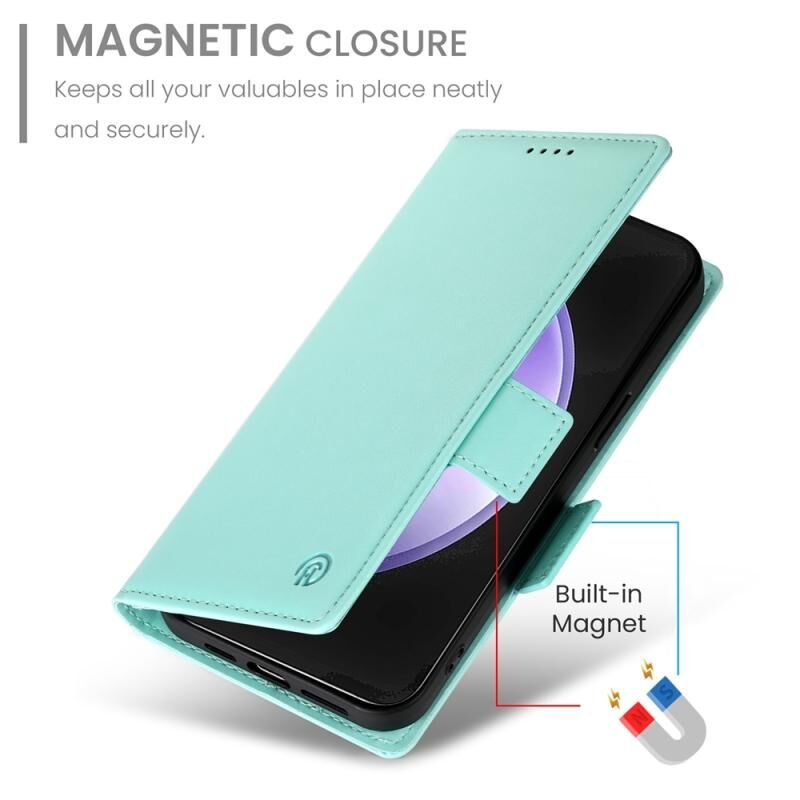 For Samsung Galaxy S23 FE 5G Side Buckle Magnetic Frosted Leather Phone Case(Mint Green)