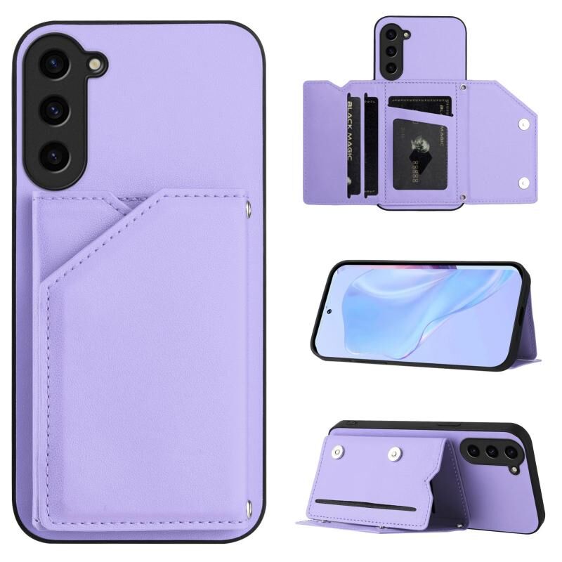 Για Samsung Galaxy S23 FE 5G δέρμα αίσθηση τέσσερις υποδοχές κάρτα τηλέφωνο υπόθεση με λουράκι καρπού (μωβ)