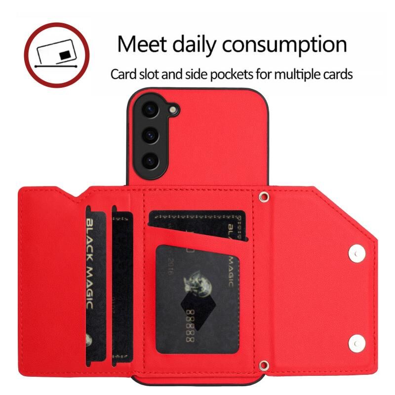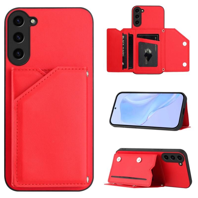 Για Samsung Galaxy S23 FE 5G δέρμα αίσθηση τέσσερις υποδοχές κάρτα τηλέφωνο υπόθεση με λουράκι καρπού (κόκκινο)