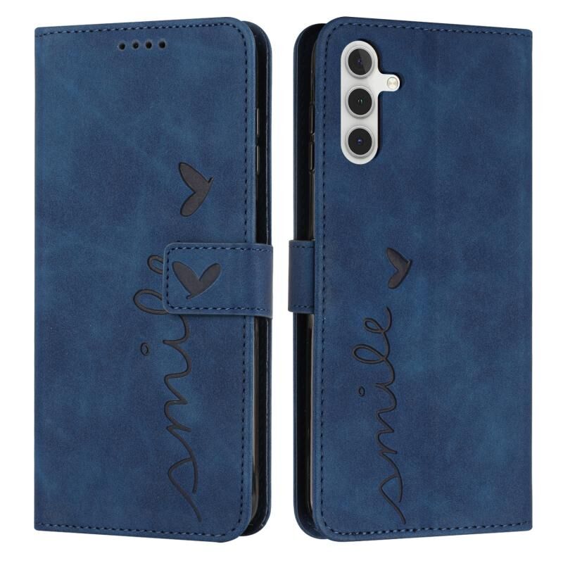 Για Samsung Galaxy S23 FE 5G δέρμα αίσθηση καρδιά μοτίβο δερμάτινη θήκη τηλεφώνου (μπλε)