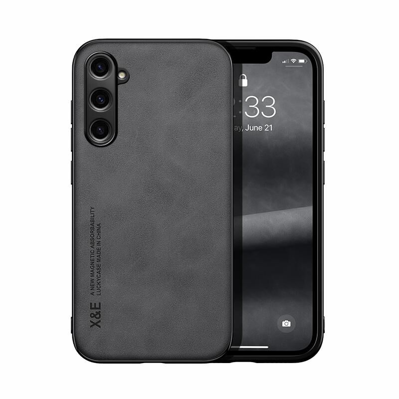 Για Samsung Galaxy S23 FE 5G Skin Feel μαγνητική δερμάτινη θήκη τηλεφώνου (σκούρο γκρι)