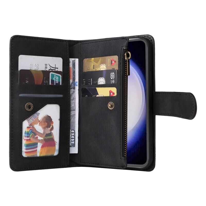 5. Πρακτική λειτουργία θήκης καρτών: Η υποδοχή κάρτας και η τσέπη πορτοφολιού με φερμουάρ και η θήκη μετρητών μπορούν να αποθηκεύσουν τις πιστωτικές σας κάρτες, τα μετρητά ή τα μικρά χαρτονομίσματα που χρειάζεστε καθημερινά.