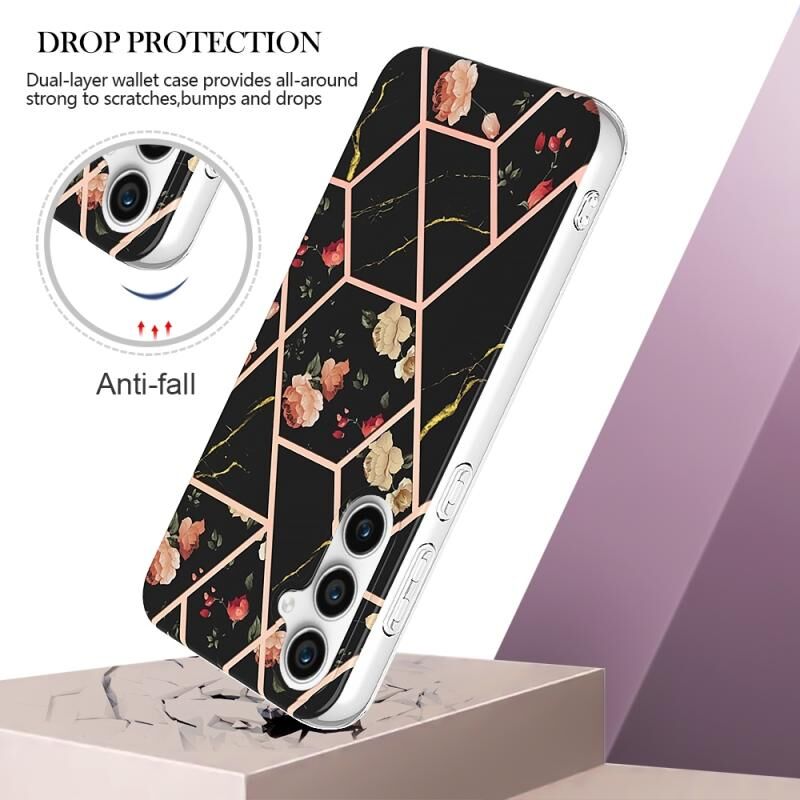 4. Χαριτωμένο και κομψό σχέδιο: Δροσερή και κομψή εμφάνιση με ηλεκτρολυτική επιμετάλλωση IMD με μοτίβο μαρμάρου και λουλουδιών, προστατεύει το τηλέφωνό σας με στυλ.