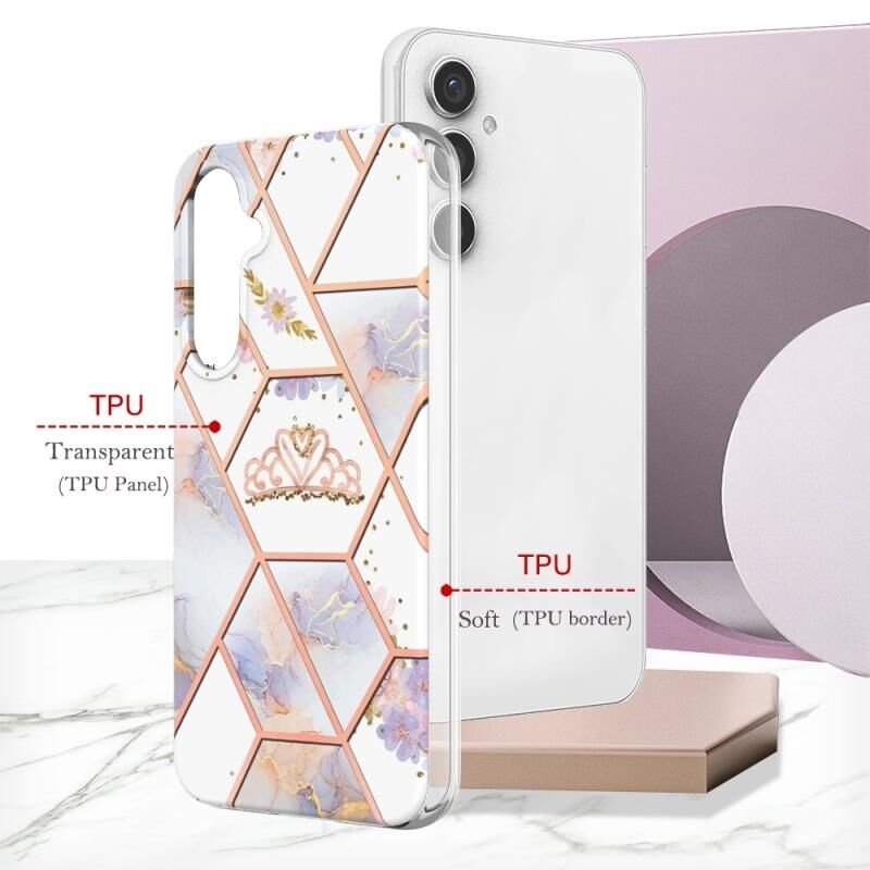 4. Χαριτωμένο και κομψό σχέδιο: Δροσερή και κομψή εμφάνιση με ηλεκτρολυτική επιμετάλλωση IMD με μοτίβο μαρμάρου και λουλουδιών, προστατεύει το τηλέφωνό σας με στυλ.
