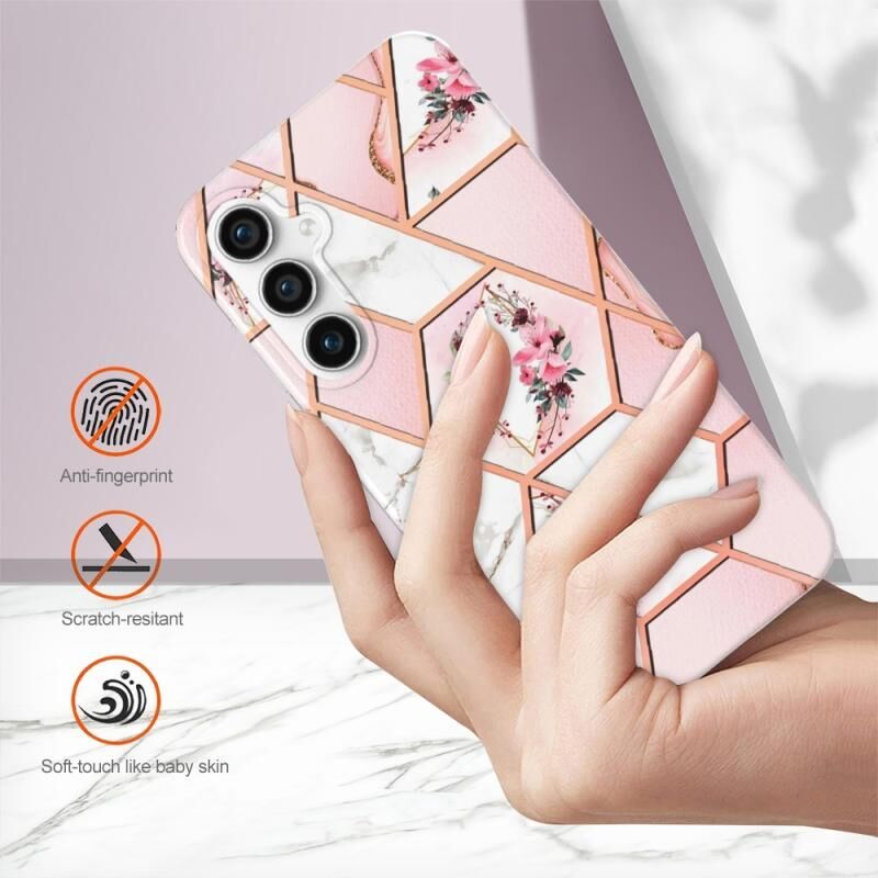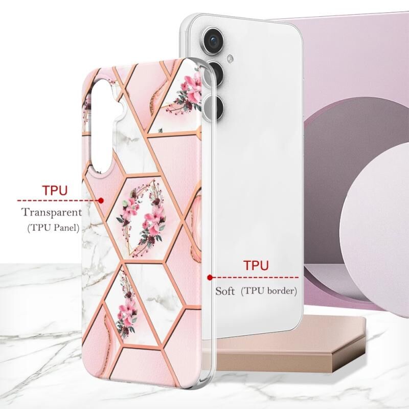 4. Χαριτωμένο και κομψό σχέδιο: Δροσερή και κομψή εμφάνιση με ηλεκτρολυτική επιμετάλλωση IMD με μοτίβο μαρμάρου και λουλουδιών, προστατεύει το τηλέφωνό σας με στυλ.