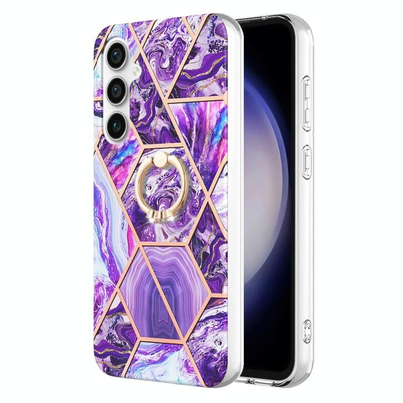 Θήκη κινητού τηλεφώνου Samsung Galaxy S23 FE 5G, με σχέδιο μαρμάρου και λουλουδιών, IMD TPU, με δακτύλιο στήριξης (Μπλε)