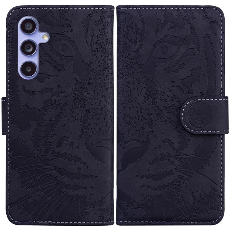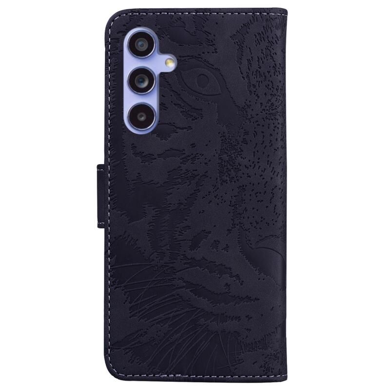 Θήκη τηλεφώνου Samsung Galaxy S23 FE 5G από δέρμα με σχέδιο Tiger Embossing και πτυσσόμενο μηχανισμό (Μαύρο)