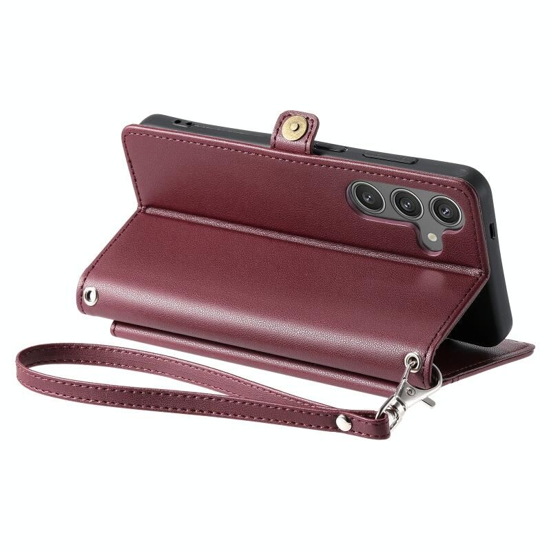 Για Samsung Galaxy S23 FE 5G Πορτοφόλι Multi-card Slot Δερμάτινη θήκη τηλεφώνου με κορδόνι (κόκκινο κρασί)