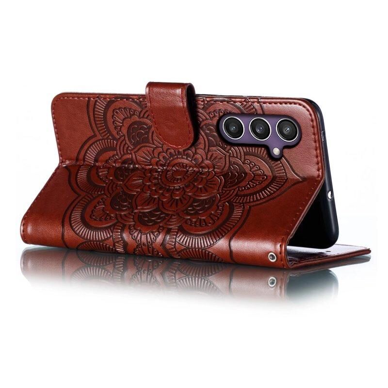 Για Samsung Galaxy S23 FE Sun Mandala ανάγλυφο μοτίβο τηλέφωνο δερμάτινη θήκη (καφέ)