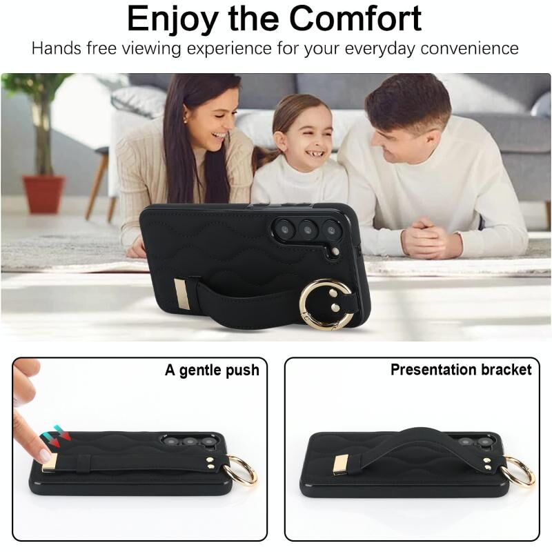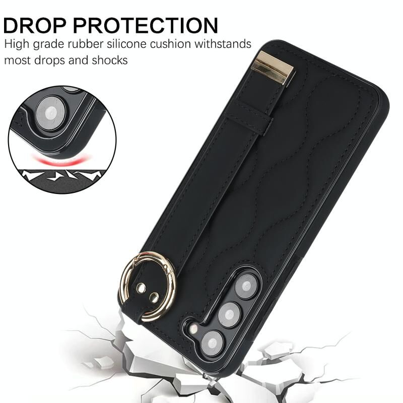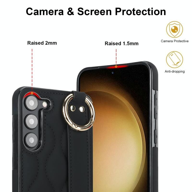 Για το Samsung Galaxy S23 Αντιολισθητική θήκη τηλεφώνου PU πλήρους κάλυψης δακτυλίου με ζώνη καρπού (Μαύρο)