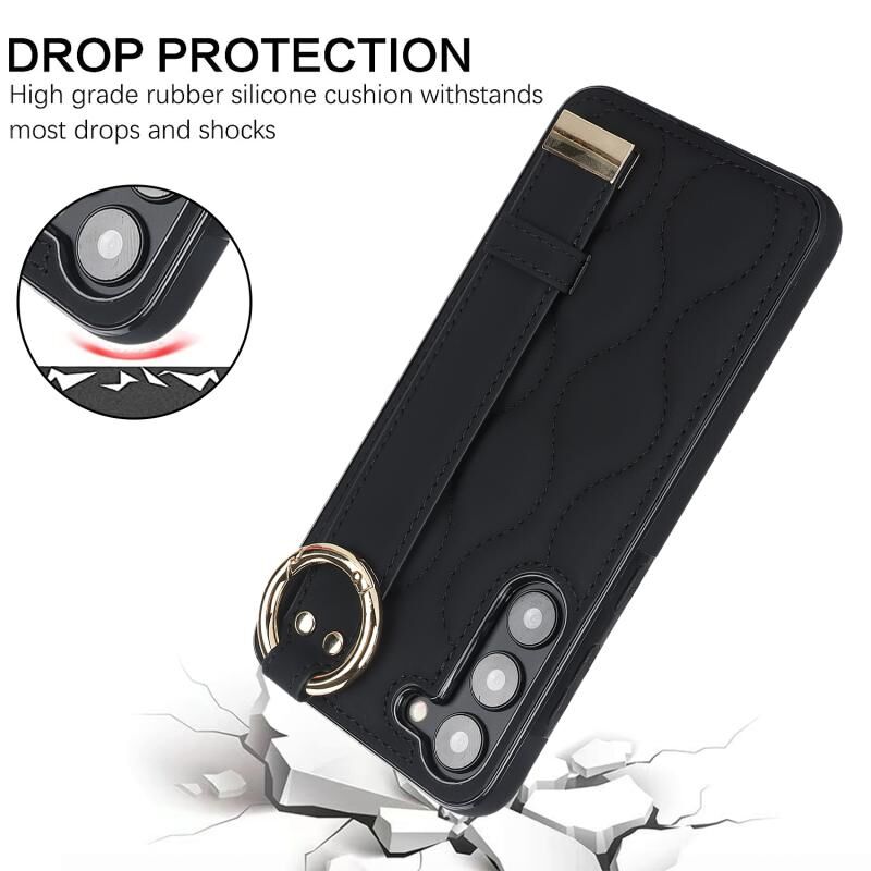 Για το Samsung Galaxy S23+ Αντιολισθητική θήκη τηλεφώνου PU πλήρους κάλυψης με ζώνη καρπού (Μαύρο)