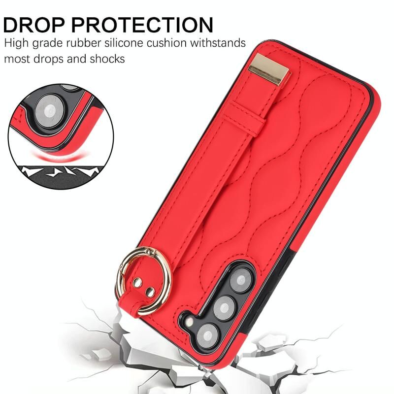 Για το Samsung Galaxy S23+ Αντιολισθητική θήκη τηλεφώνου PU πλήρους κάλυψης με ζώνη καρπού (Κόκκινο)