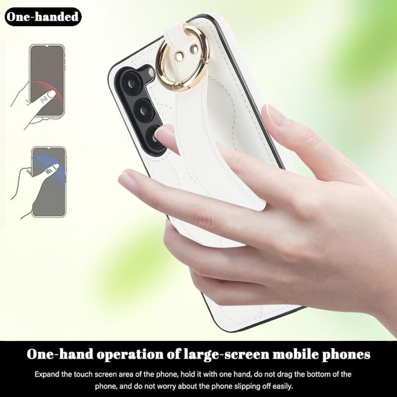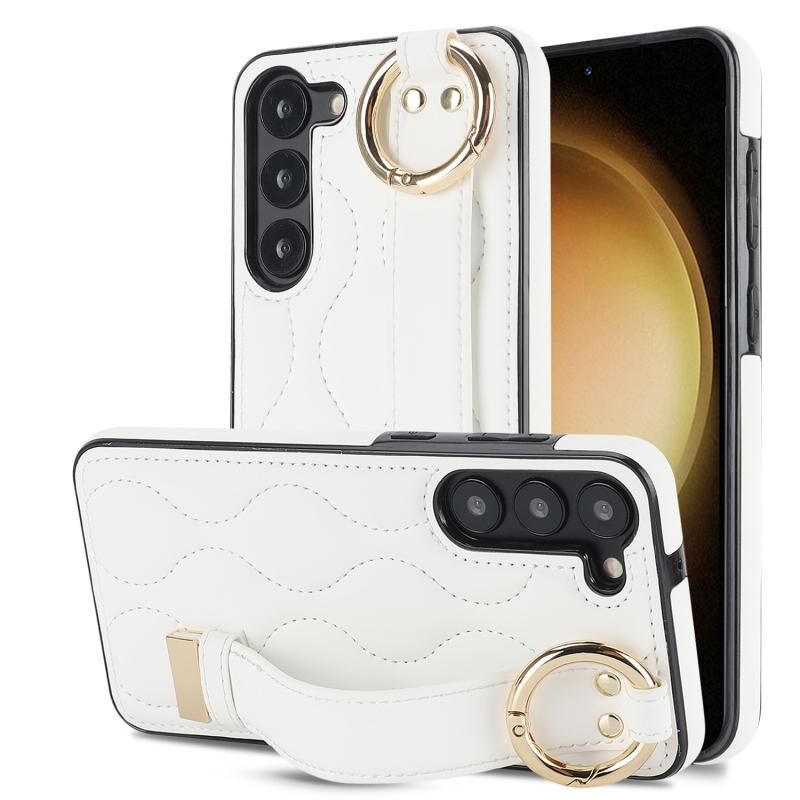 Για το Samsung Galaxy S23+ Αντιολισθητική θήκη τηλεφώνου PU πλήρους κάλυψης με ζώνη καρπού (Λευκό)