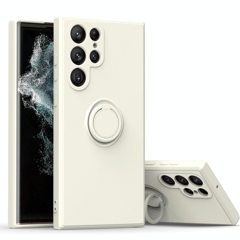 Για Samsung Galaxy S23 Plus 5G δαχτυλίδι Kickstand TPU σιλικόνης τηλέφωνο υπόθεση (Antique White)