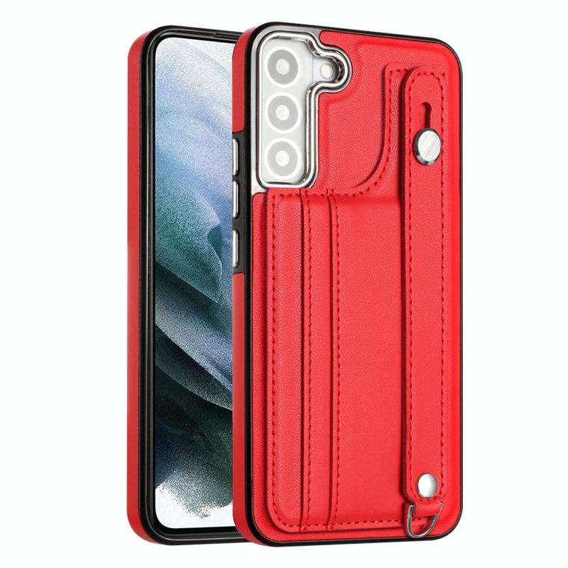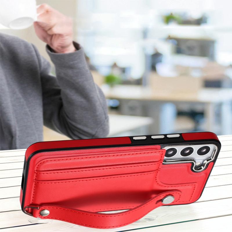 Θήκη κινητού Samsung Galaxy S23+ ανθεκτική στις κρούσεις από δέρμα με λουρί καρπού (Κόκκινο)