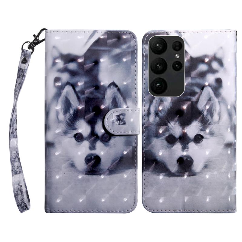 For Samsung Galaxy S23 Ultra 3D Painted Leather Phone Case(Husky)