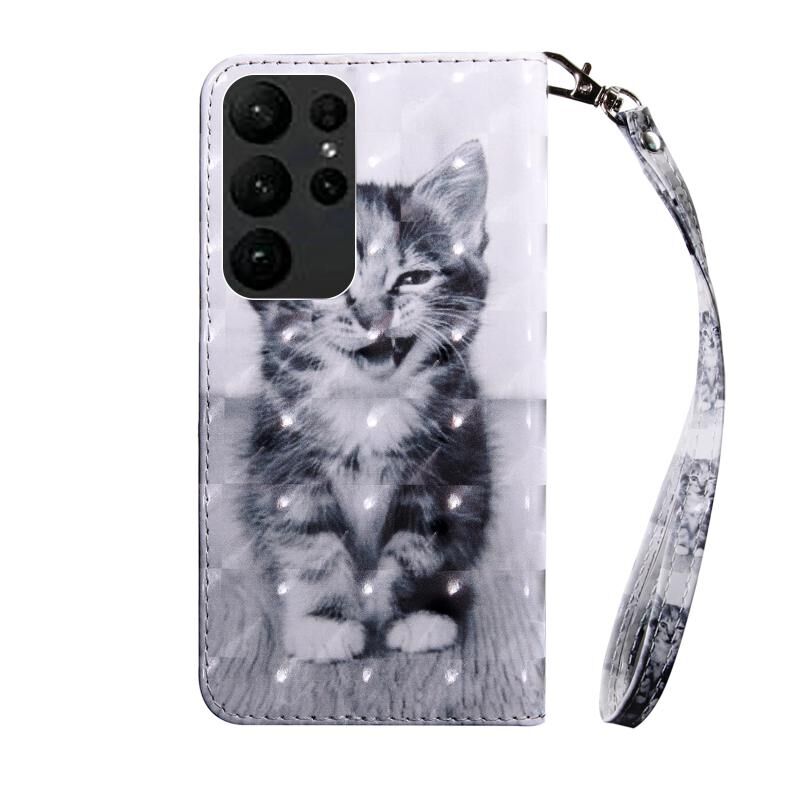 Θήκη τηλεφώνου Samsung Galaxy S23 Ultra με ανάγλυφο σχέδιο από δέρμα (Γάτα με χαμόγελο)