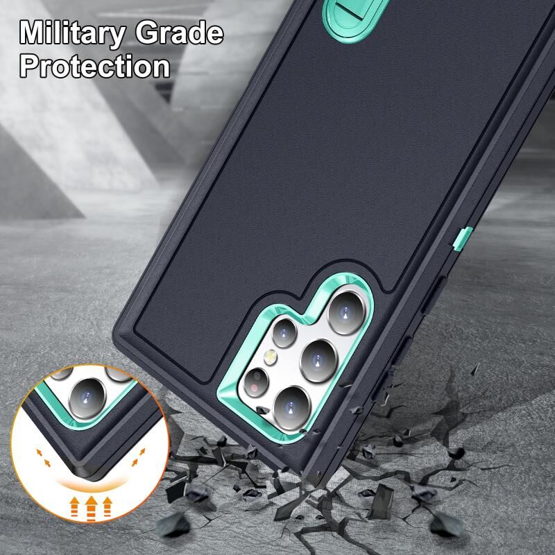 Για Samsung Galaxy S23 ultra 5G 3 σε 1 ανθεκτική θήκη τηλεφώνου κάτοχος (σκούρο μπλε + ανοιχτό μπλε)
