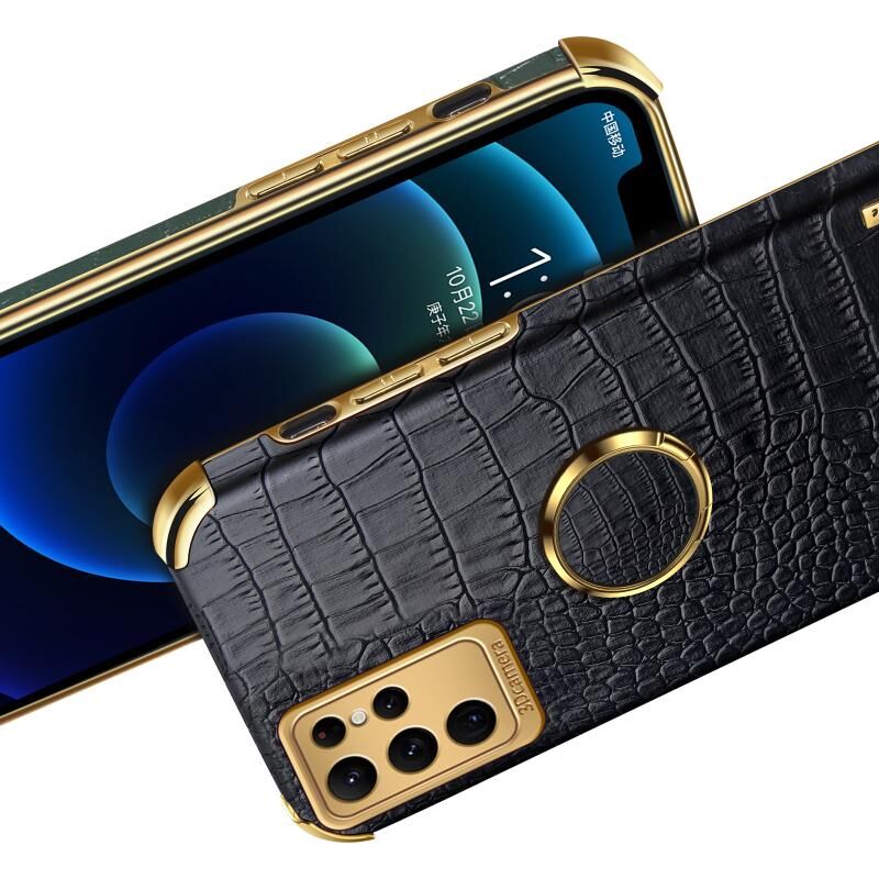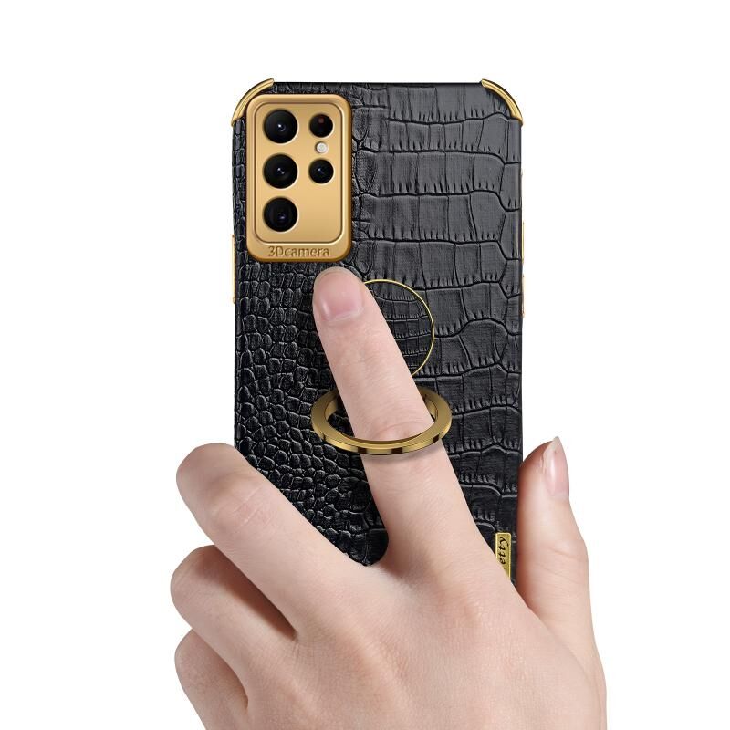 Θήκη τηλεφώνου με υφή κροκόδειλου και ηλεκτρολυτική επίστρωση 6D για Samsung Galaxy S23 Ultra 5G με βάση στήριξης (Λευκό)