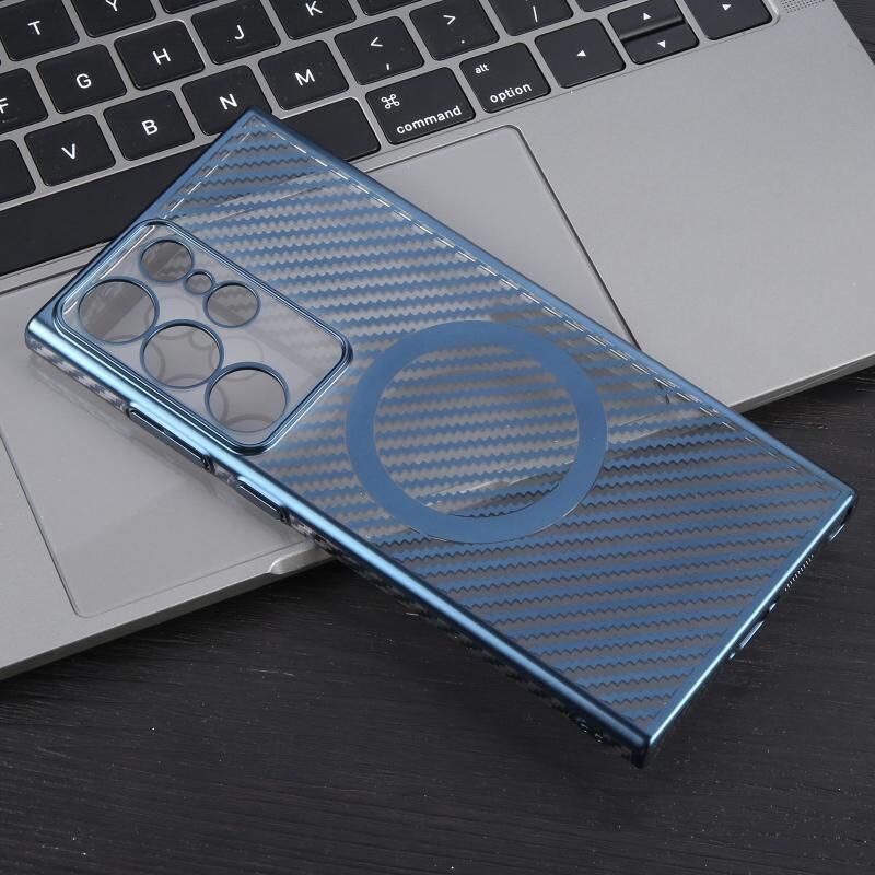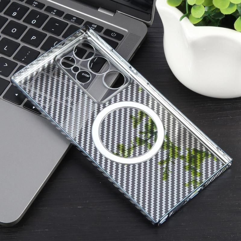 Θήκη κινητού τηλεφώνου Samsung Galaxy S23 Ultra 5G, διαφανής από πολυανθρακικό με επίστρωση ανθρακονημάτων 6D και MagSafe (Ασημί Αστρόφωτο).