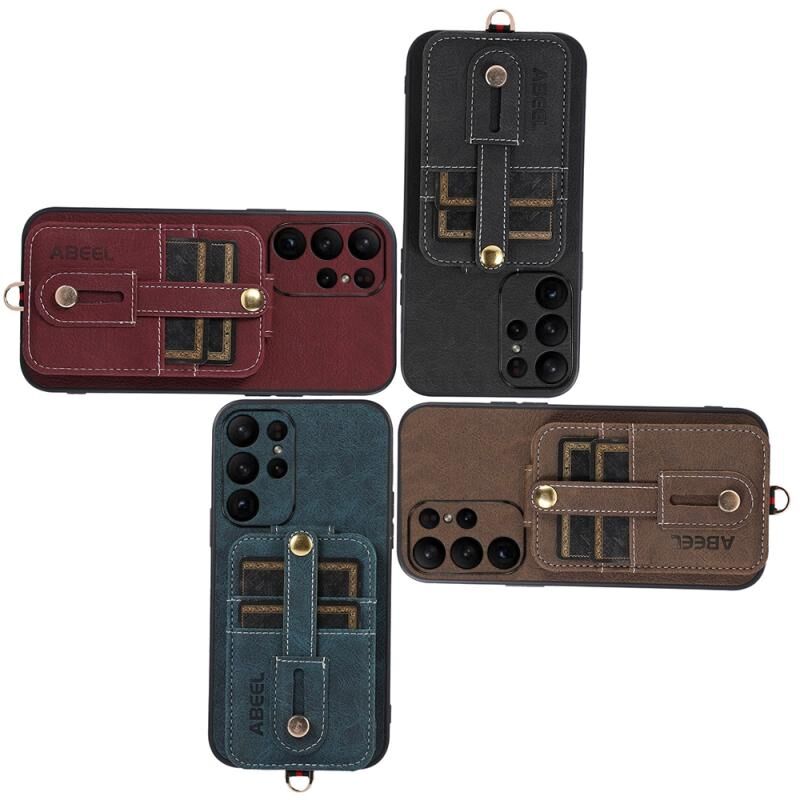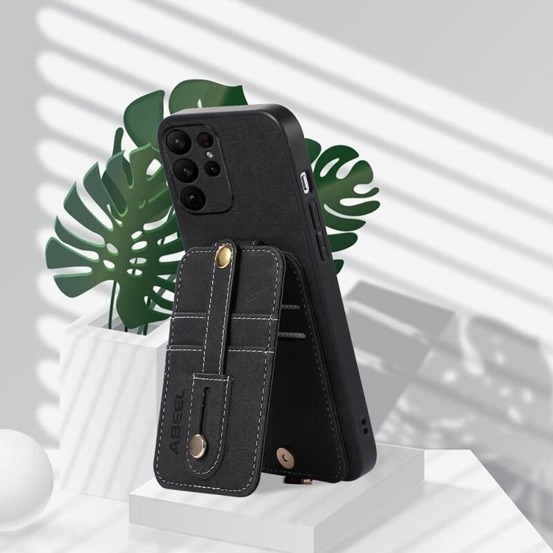 Θήκη κινητού τηλεφώνου Samsung Galaxy S23 Ultra 5G ABEEL με υφή δέρματος λυτσί, από PU (Μαύρο)