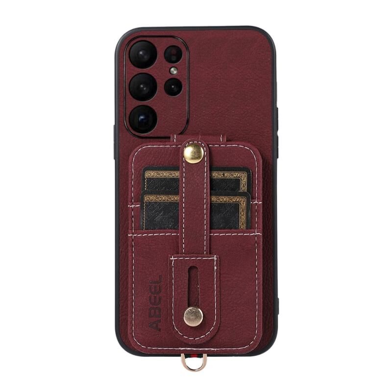 Θήκη κινητού τηλεφώνου Samsung Galaxy S23 Ultra 5G ABEEL με υφή δέρματος λυτσί, από PU (Μαύρο)