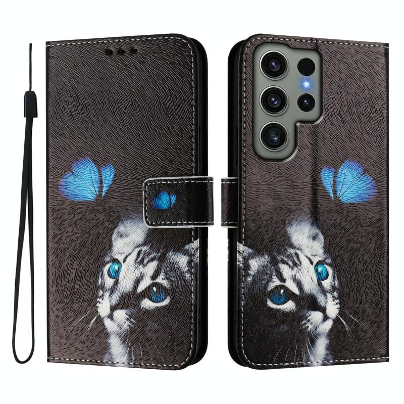 For Samsung Galaxy S23 Ultra 5G Art Colored Drawing Pattern Leather Phone Case(Butterfly cat)