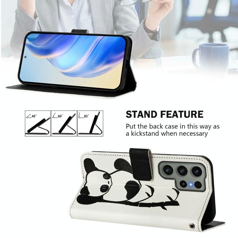 For Samsung Galaxy S23 Ultra 5G Art Colored Drawing Pattern Leather Phone Case(Panda)
