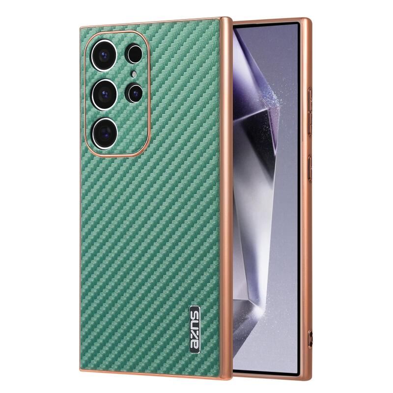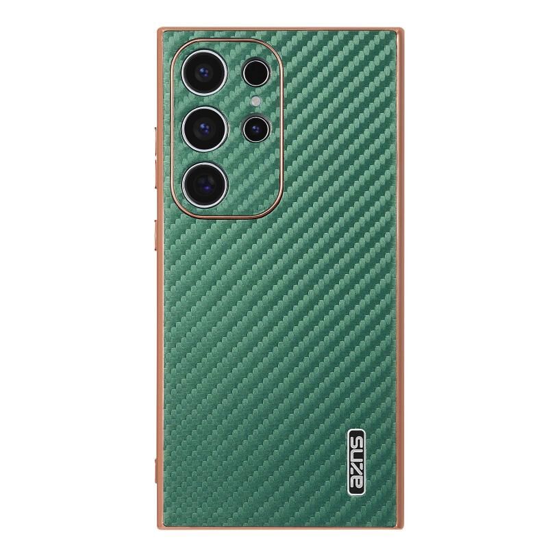 For Samsung Galaxy S23 Ultra 5G AZNS Electroplated Edge Carbon Fiber Texture Phone Case(Green) (AZNS)