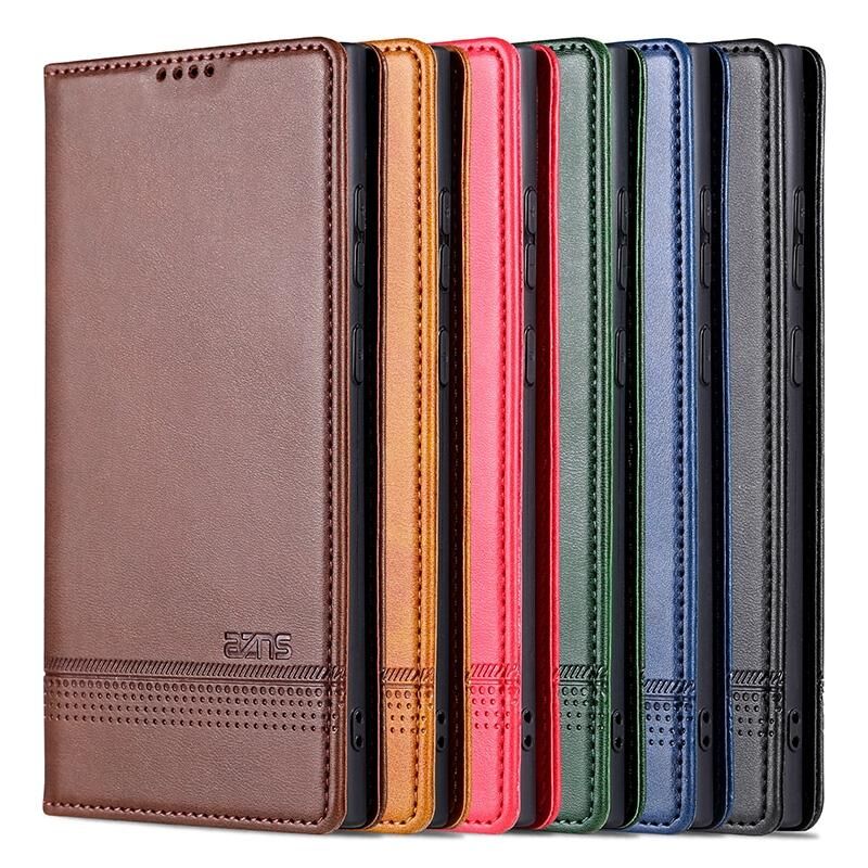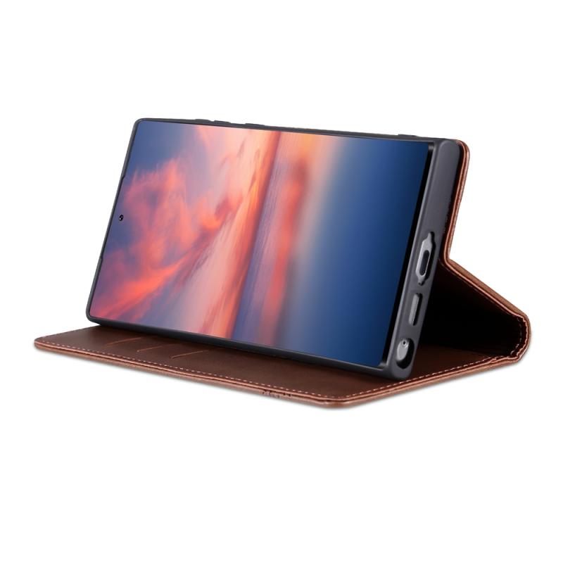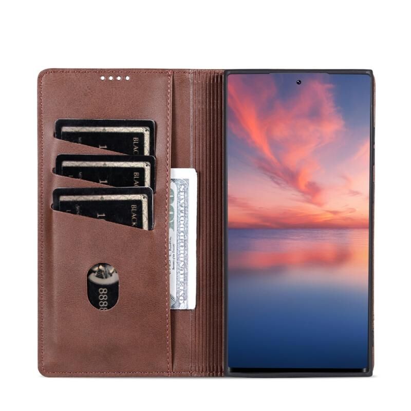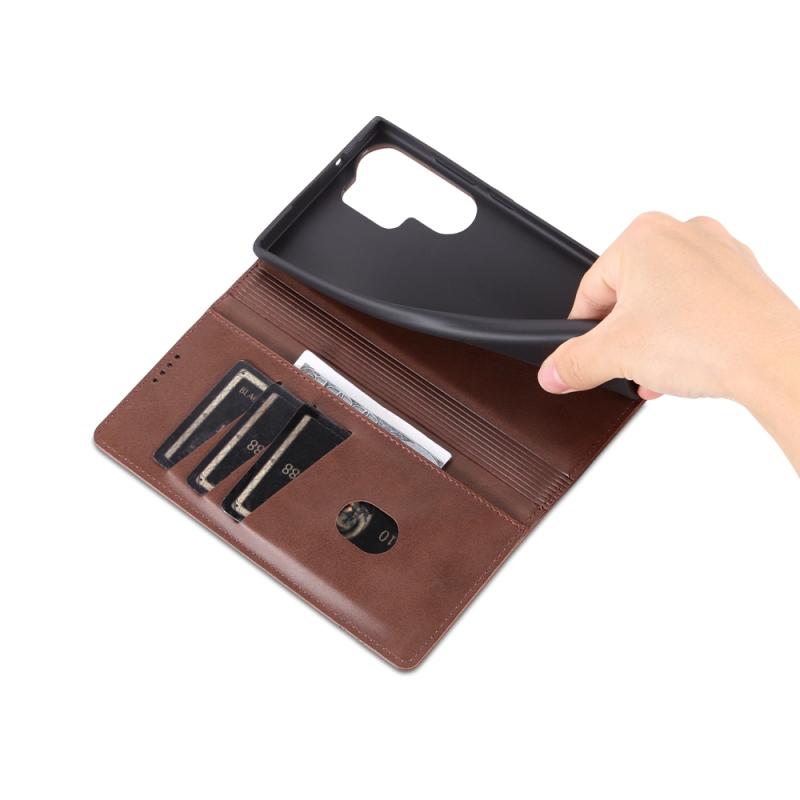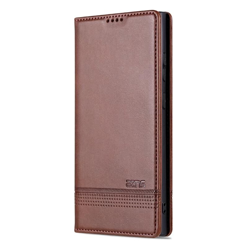 Θήκη τηλεφώνου Samsung Galaxy S23 Ultra 5G AZNS, δερμάτινη, τύπου flip, με μαγνητικό κλείσιμο και υφή μοσχαριού (Σκούρο Καφέ) (Σκούρο καφέ)