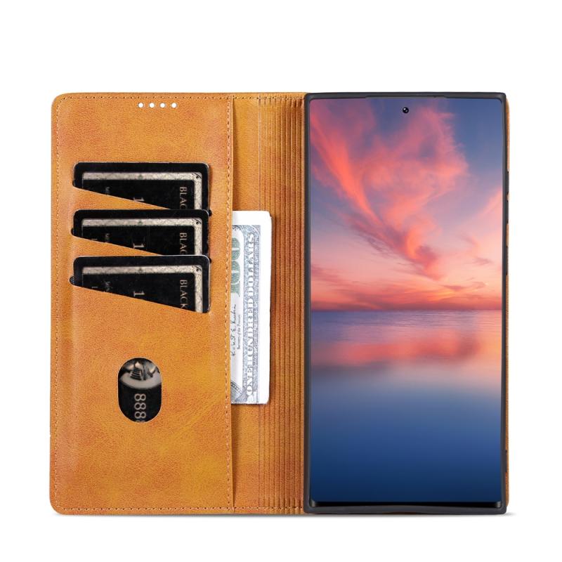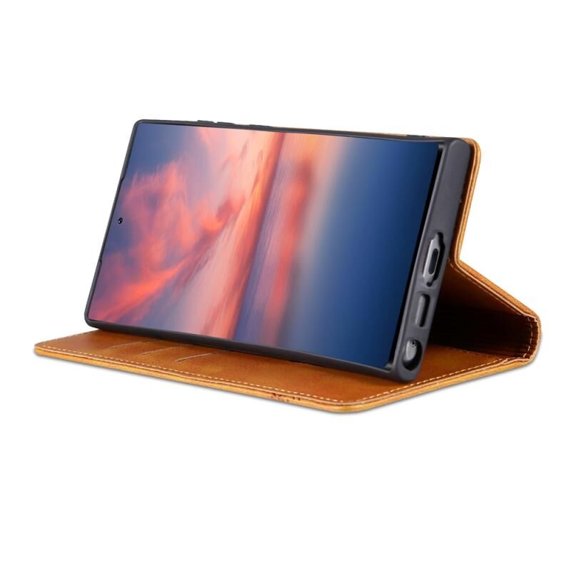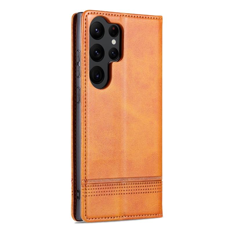 Θήκη τηλεφώνου Samsung Galaxy S23 Ultra 5G AZNS, δερμάτινη, τύπου flip, με μαγνητικό κλείσιμο και υφή μοσχαριού (Σκούρο Καφέ) (Ανοιχτό καφέ)