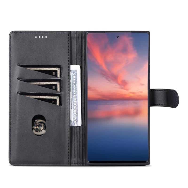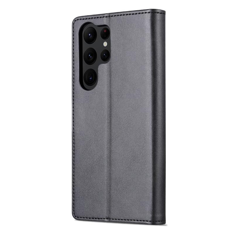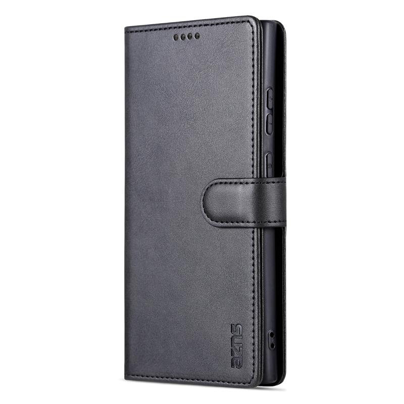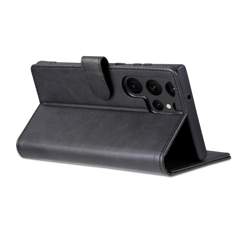 Θήκη τηλεφώνου Samsung Galaxy S23 Ultra 5G AZNS, δερμάτινη, τύπου flip, με υφή μοσχαρίσιου δέρματος (Μπλε) (Μαύρο)