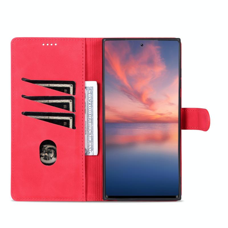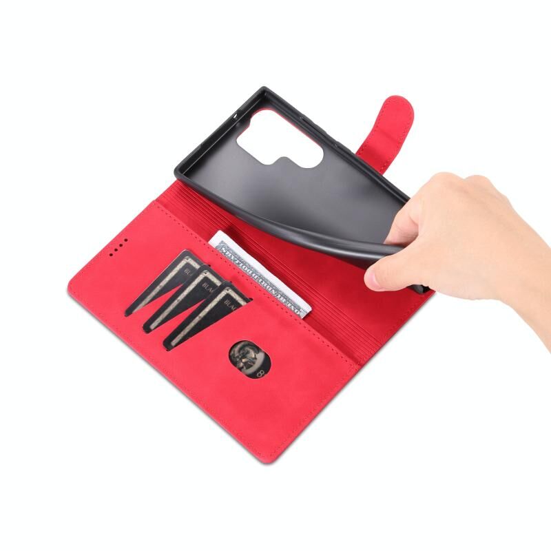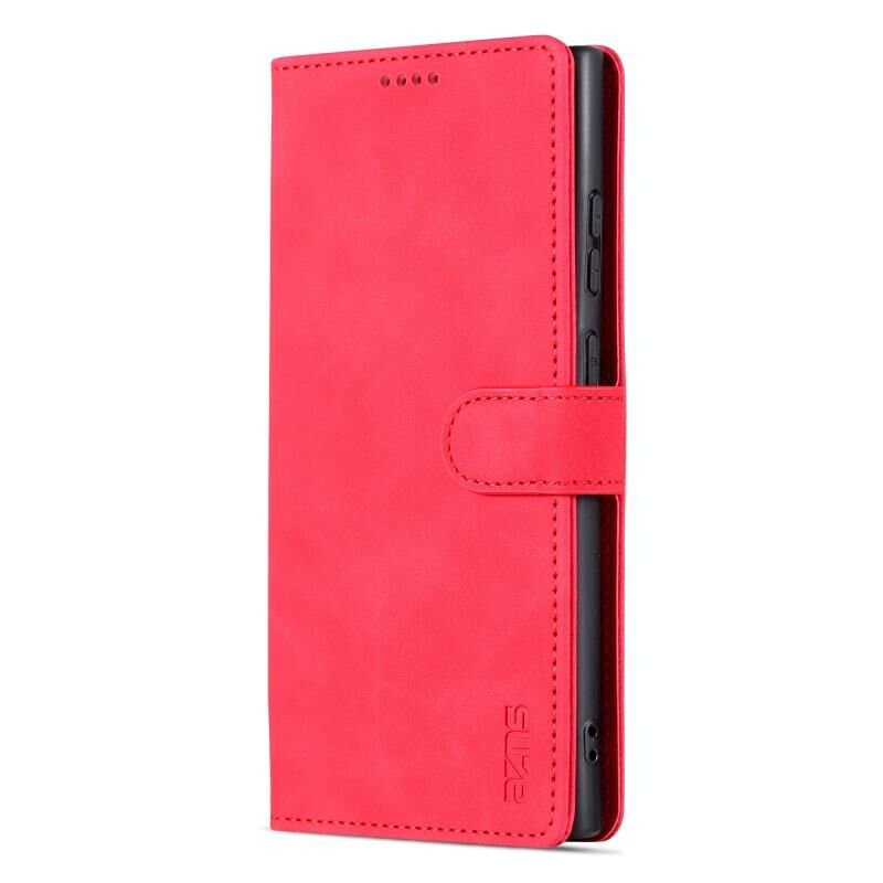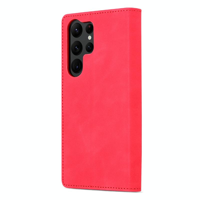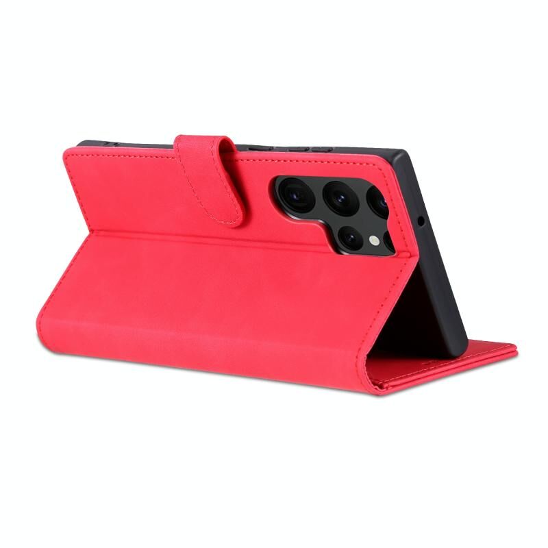 Θήκη τηλεφώνου Samsung Galaxy S23 Ultra 5G AZNS, δερμάτινη, τύπου flip, με υφή μοσχαρίσιου δέρματος (Μπλε) (Κόκκινο)
