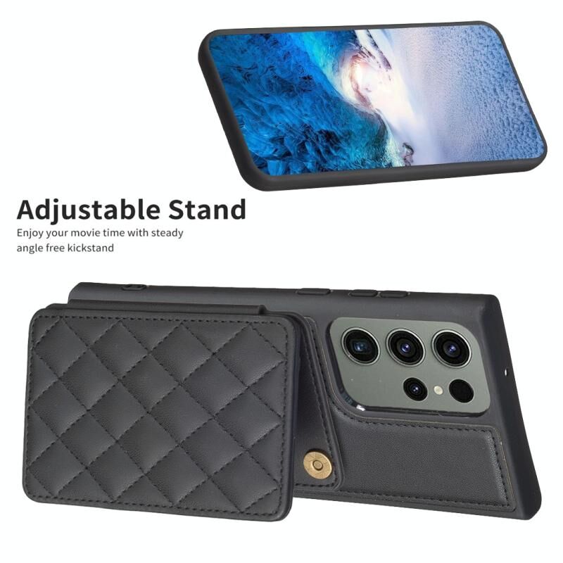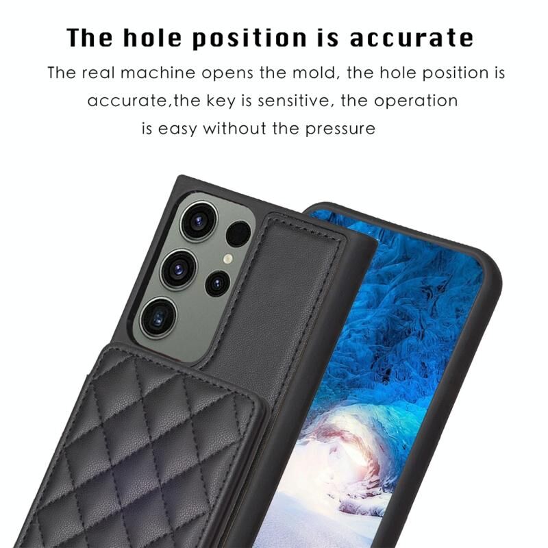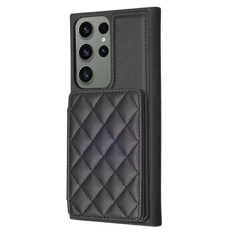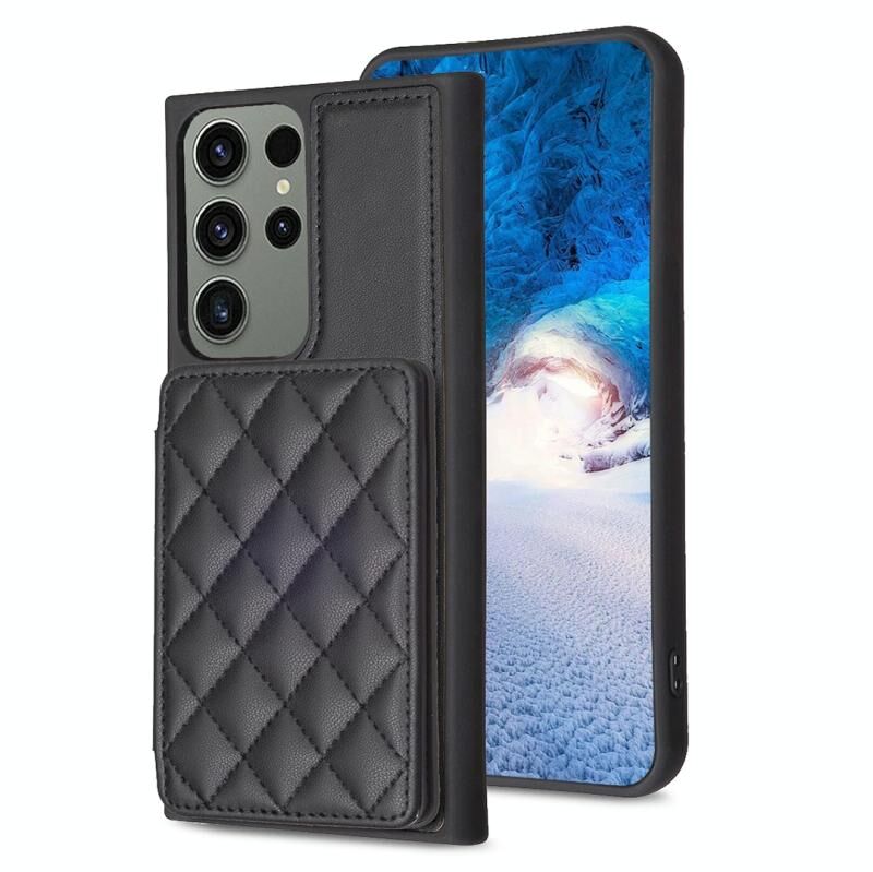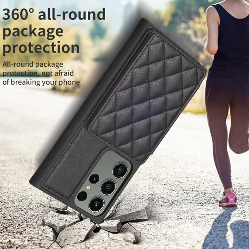 Για Samsung Galaxy S23 Ultra 5G BF25 τετράγωνο καρό τσάντα κάρτα κάτοχος θήκη τηλεφώνου τσάντα (μαύρο)
