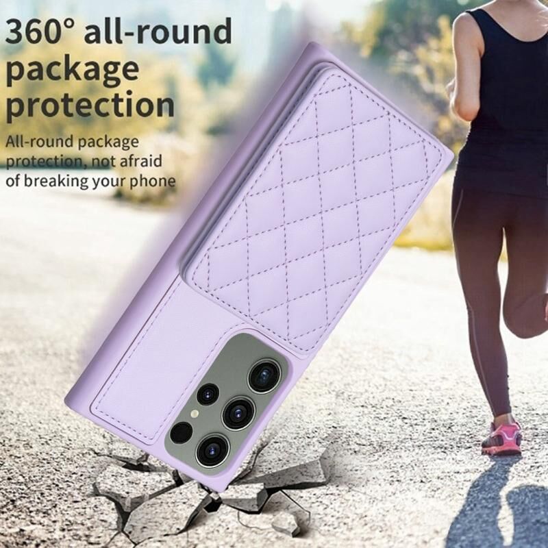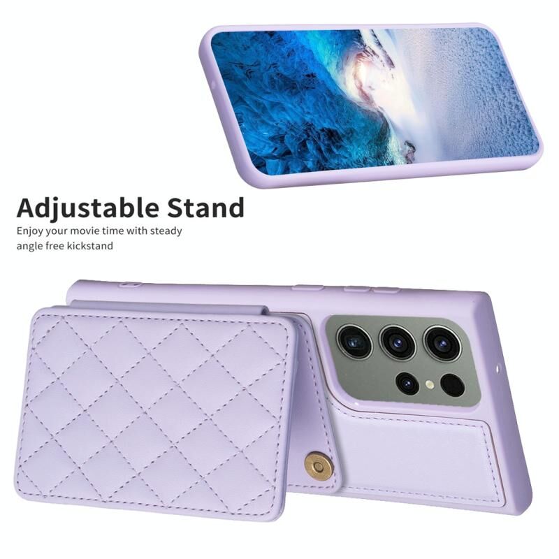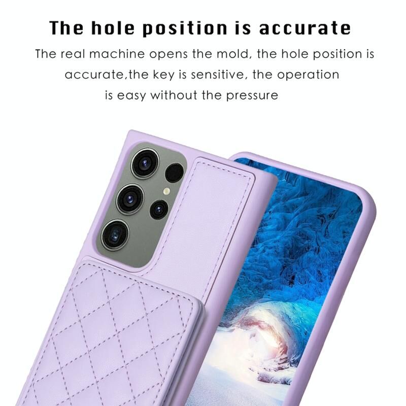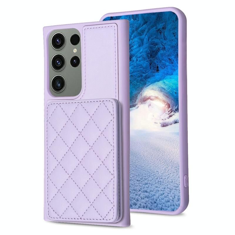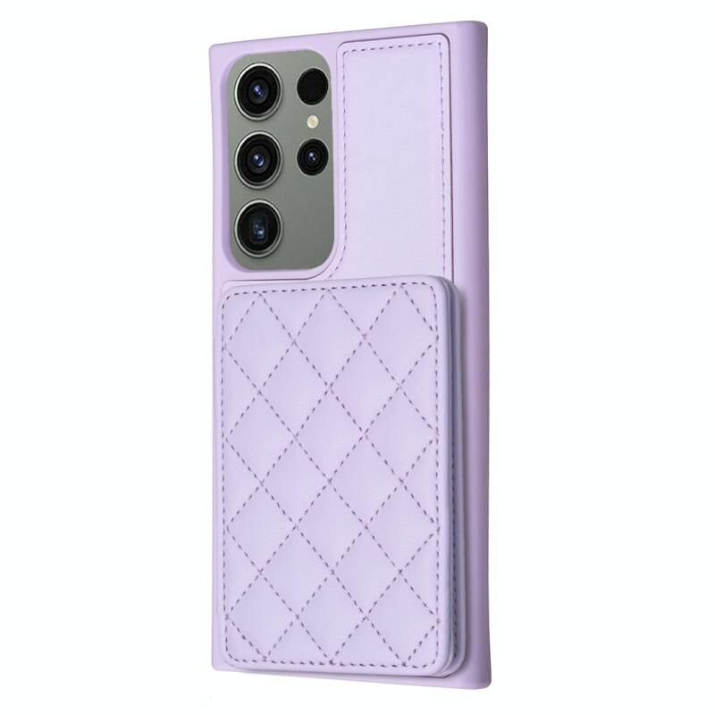 Για Samsung Galaxy S23 Ultra 5G BF25 τετράγωνο καρό τσάντα κάρτα κάτοχος υπόθεση τηλεφώνου (μωβ)