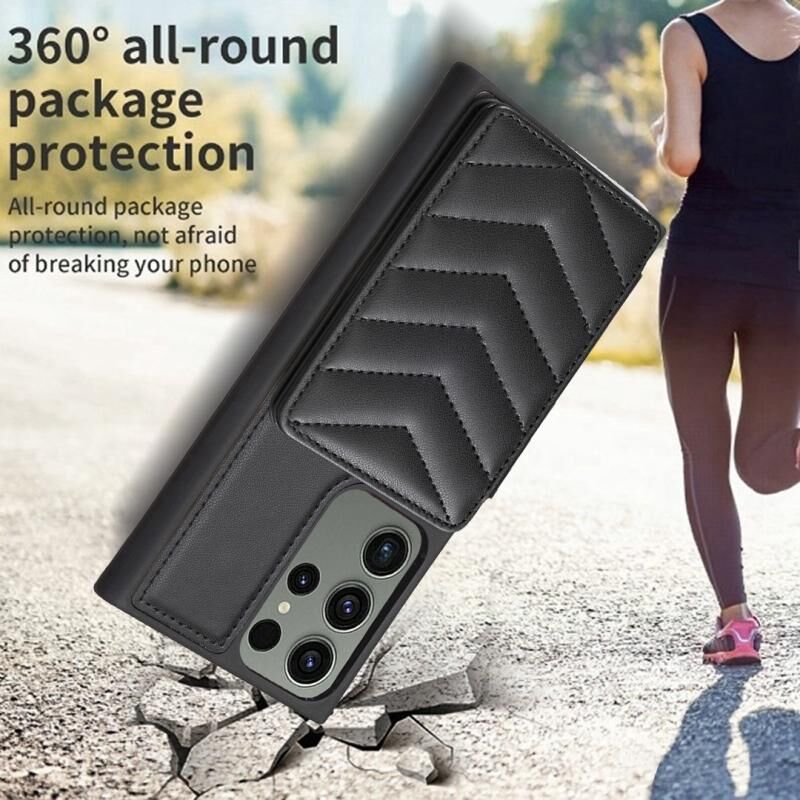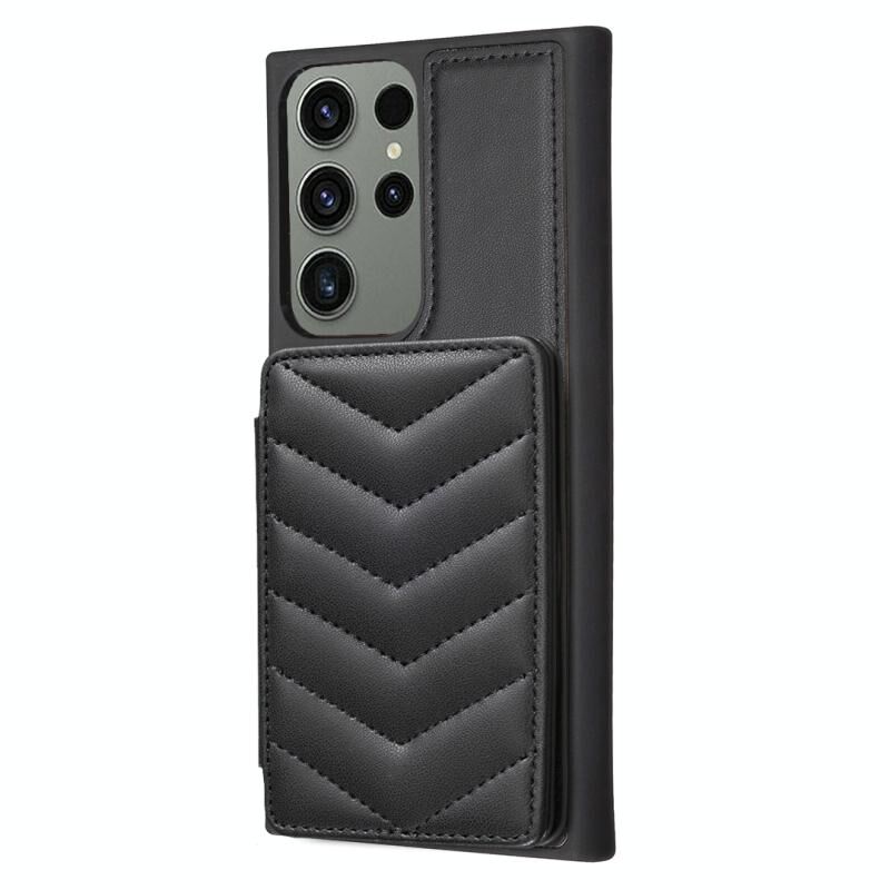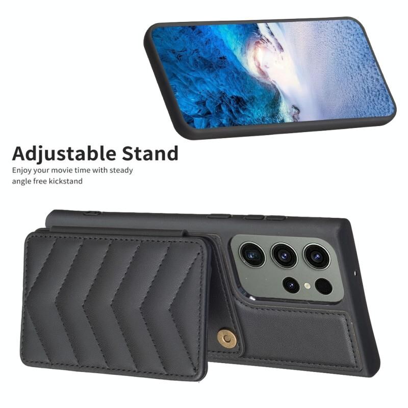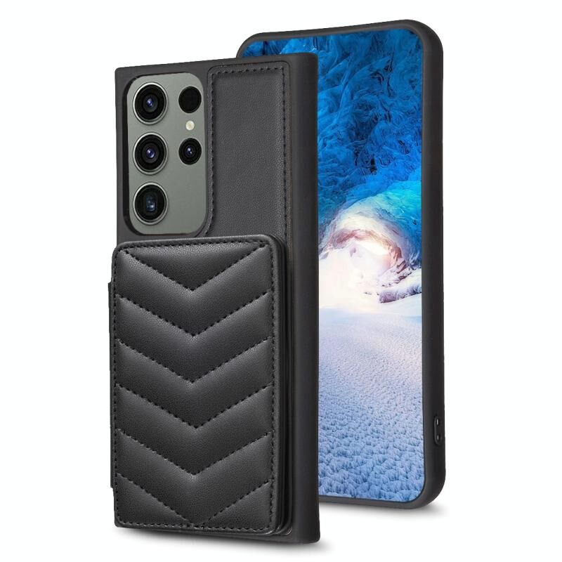 Για Samsung Galaxy S23 Ultra 5G BF26 Wave μοτίβο κάρτα τσάντα κάτοχος υπόθεση τηλεφώνου (μαύρο)