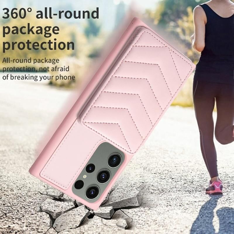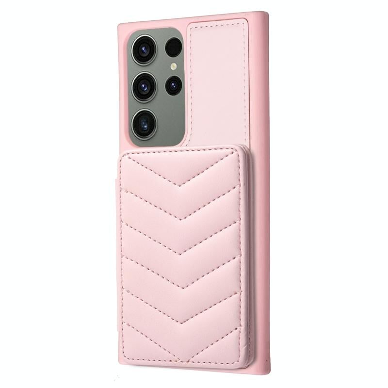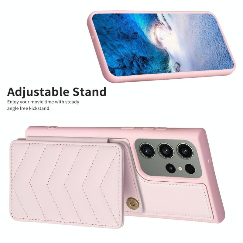 Για Samsung Galaxy S23 Ultra 5G BF26 Wave μοτίβο κάρτα τσάντα κάτοχος θήκη τηλεφώνου (ροζ)