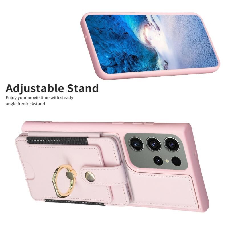 Για Samsung Galaxy S23 Ultra 5G BF27 Μεταλλικό δαχτυλίδι τσάντα κάρτα κάτοχος υπόθεση τηλεφώνου (ροζ)