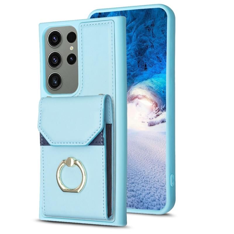 Για το Samsung Galaxy S23 Ultra 5G BF29 Οργάνου κάρτα τσάντα δαχτυλίδι κάτοχος υπόθεση τηλεφώνου (μπλε)