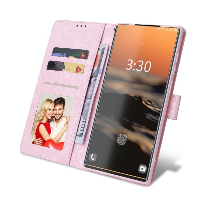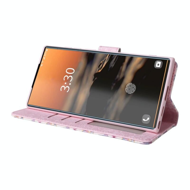 Θήκη τηλεφώνου Samsung Galaxy S23 Ultra 5G από δέρμα με σχέδιο μπρονζέ βαφής και τεχνολογία RFID (Βιολέτες)