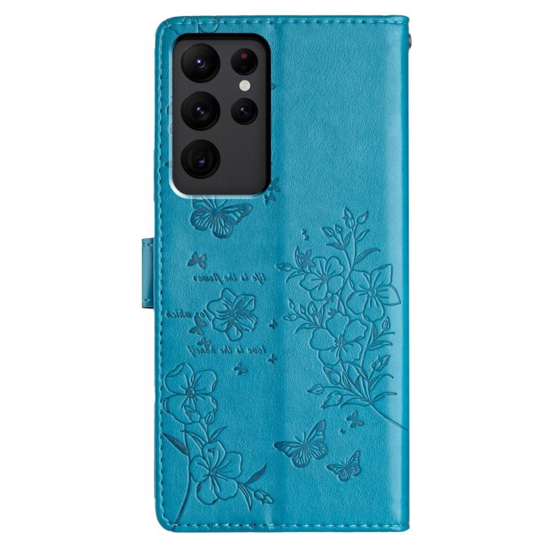 For Samsung Galaxy S23 Ultra 5G Butterflies and Flowers Leather Phone Case(Blue)