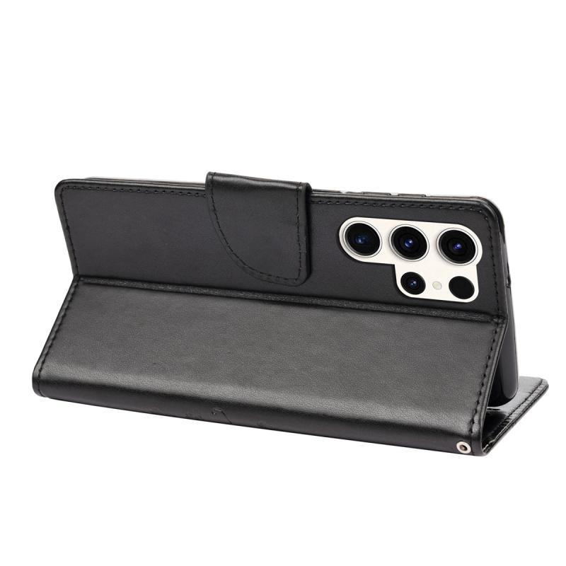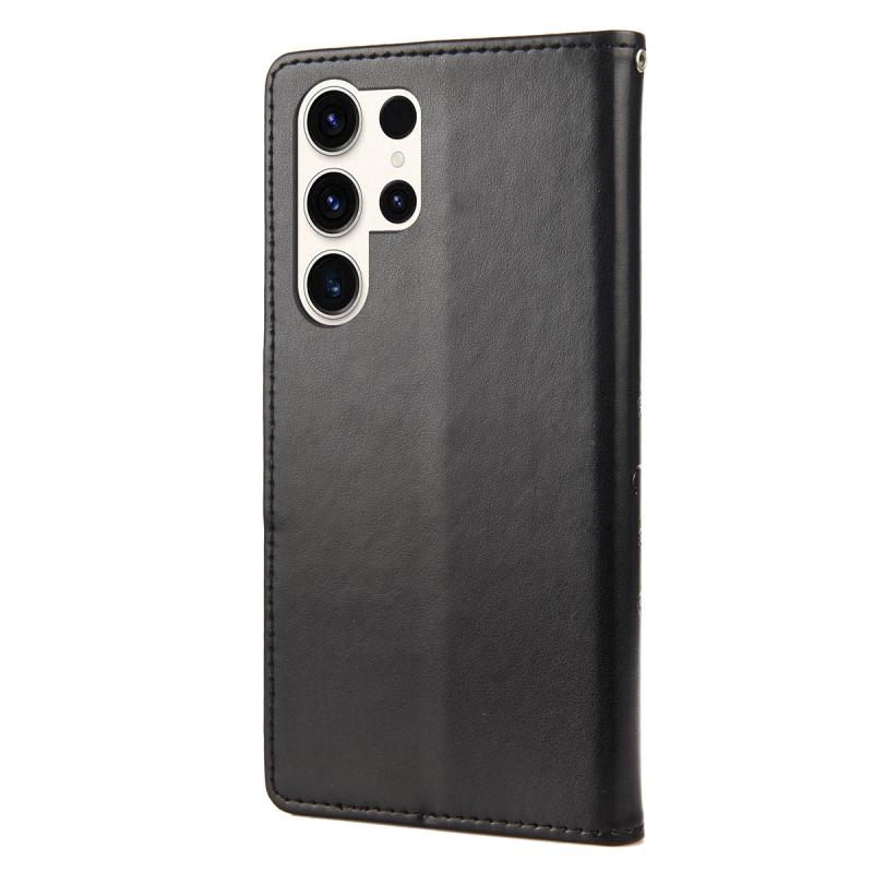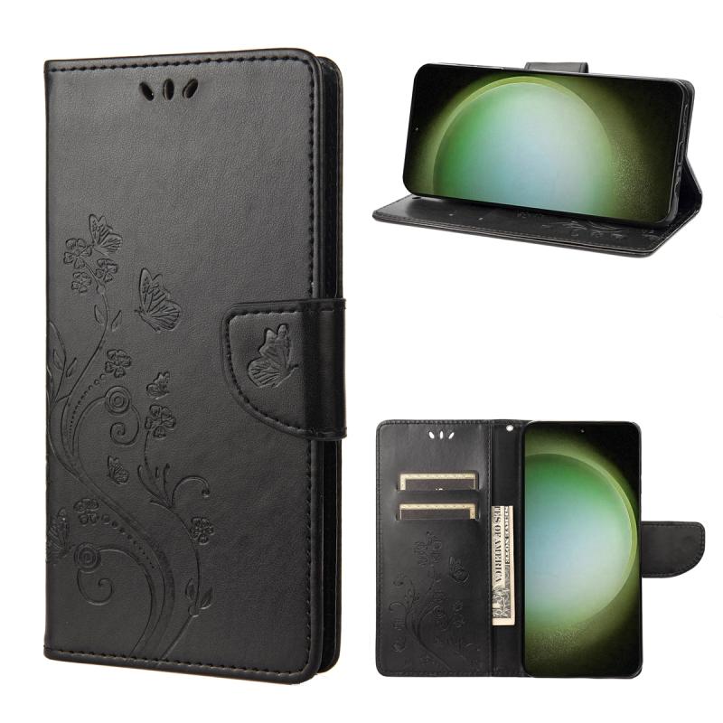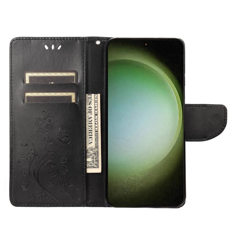Θήκη τηλεφώνου Samsung Galaxy S23 Ultra 5G, δερμάτινη, με σχέδιο πεταλούδας και λουλουδιών (Μαύρο)