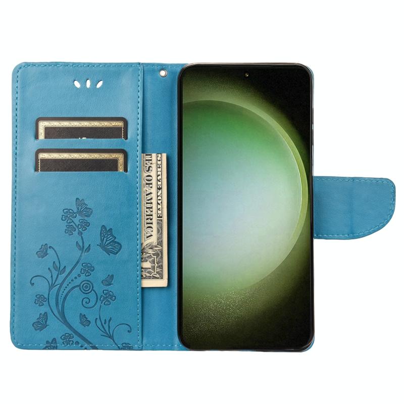 Θήκη τηλεφώνου Samsung Galaxy S23 Ultra 5G, δερμάτινη, με σχέδιο πεταλούδας και λουλουδιών (Πράσινη)