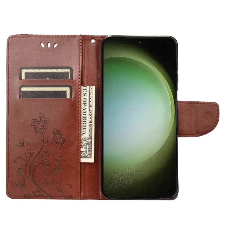 Θήκη τηλεφώνου Samsung Galaxy S23 Ultra 5G, δερμάτινη, με σχέδιο πεταλούδας και λουλουδιών (Μαύρο)