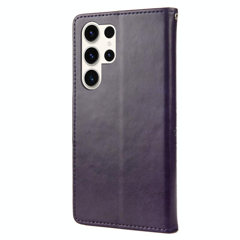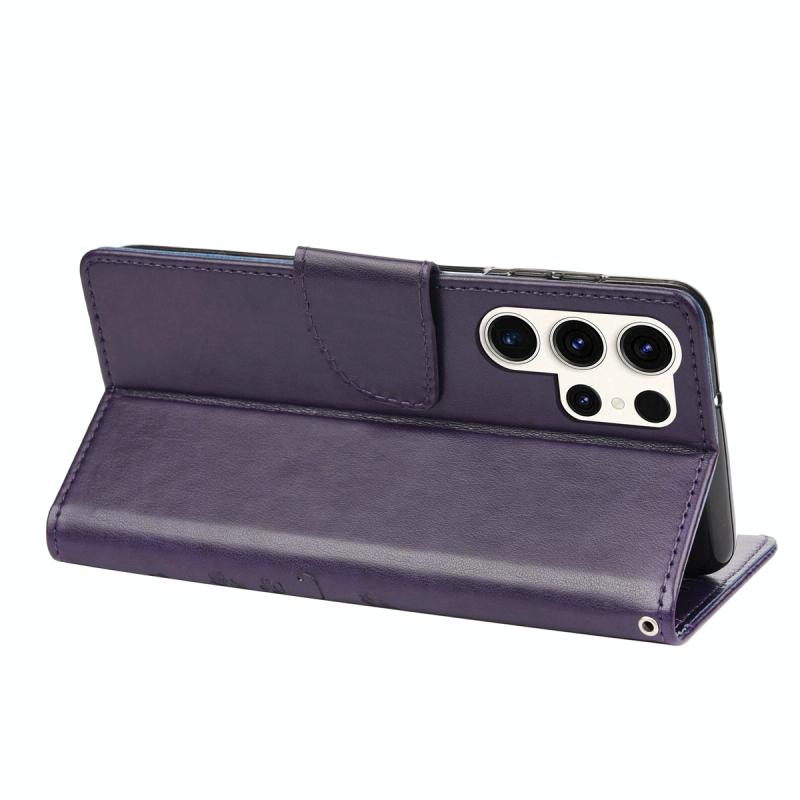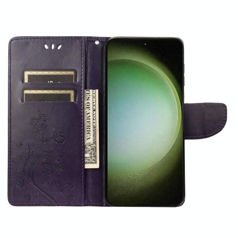 Θήκη τηλεφώνου Samsung Galaxy S23 Ultra 5G, δερμάτινη, με σχέδιο πεταλούδας και λουλουδιών (Μαύρο)